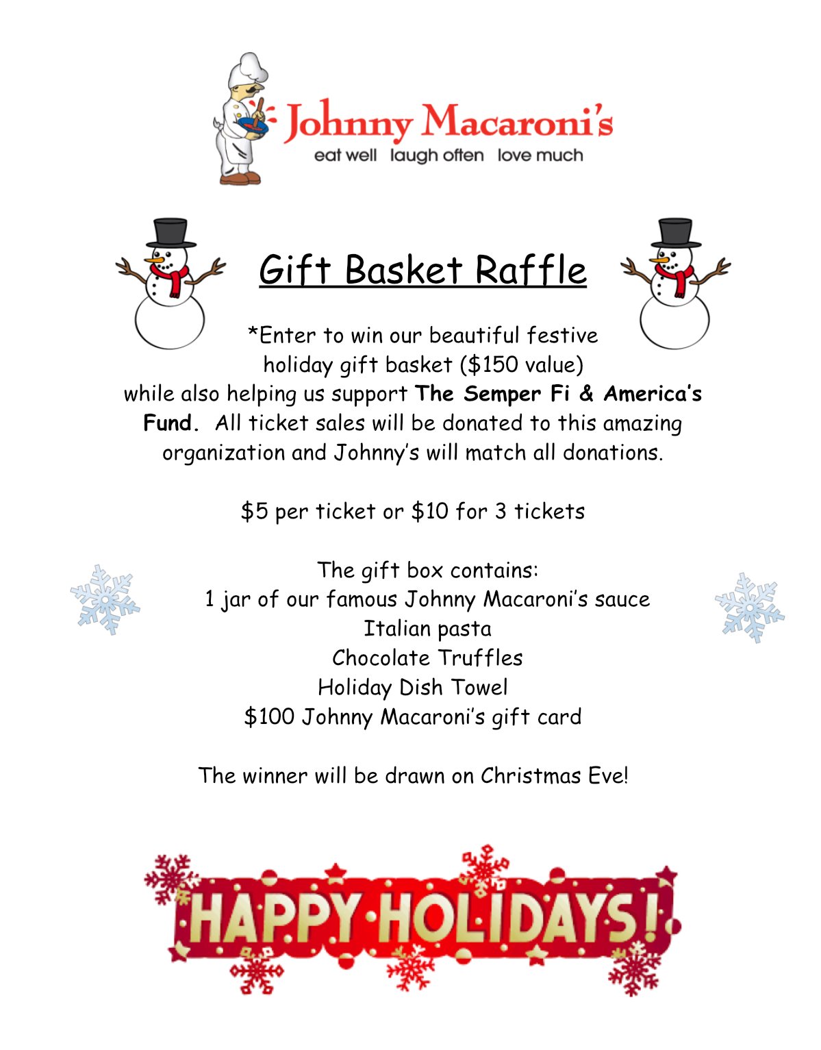 at Johnny Macaroni’s!